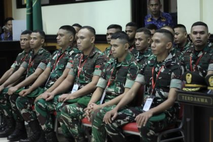 Sejumlah anggota TNI AD selaku terdakwa kasus penganiayaan terhadap terhadap Prada Lucky Saputra Namo menjalani sidang perdana di Pengadilan Militer III-15 Kupang, NTT, Selasa (28/10/2025). Pengadilan...